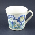 Turiデザイン、ノルウェーFiggjo/フィッギオ社のカップ&ソーサー、小さいサイズです。Tor Vikingシリーズ。かわいい花のイラストが青と緑の色彩で描かれています。カップのサイズ:直径7.5cm、高さ7cm