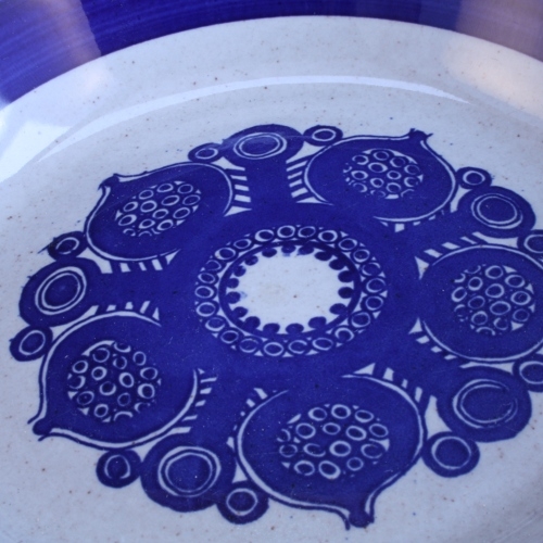 ノルウェーStavangerflint社(スタヴァンゲルフリント)のスープ皿です。鮮やかな青色の模様が映えて、とても綺麗です。所々にキズが見られますが、ひび・欠け・貫入などありません。使用感もほとんど無く、とてもきれいなコンディションです。